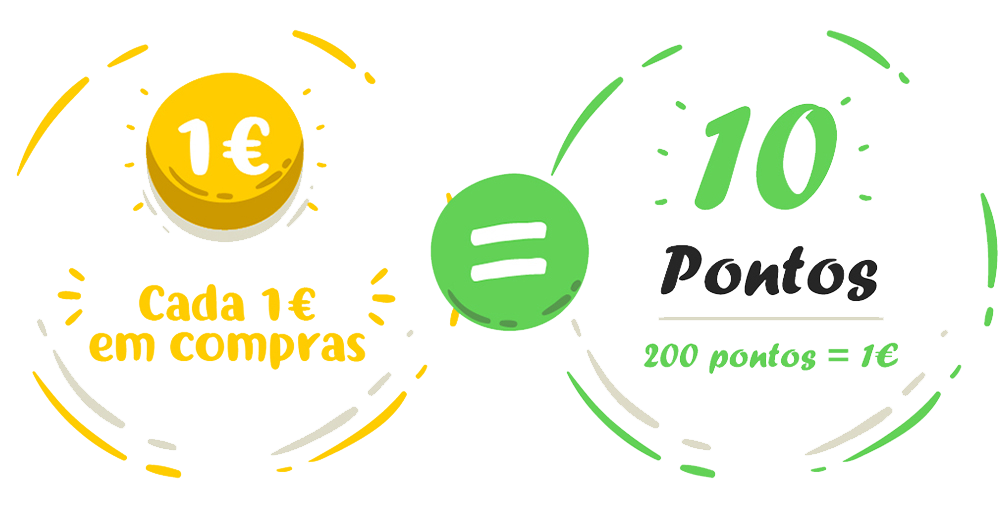 Cada 1€ em compras = 10 pontos