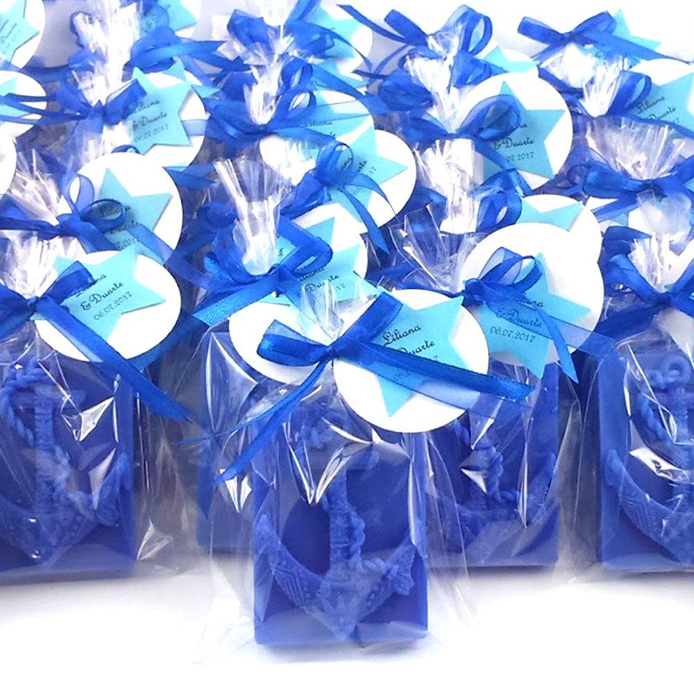 Este modelo de âncora em sabonete pode ser uma linda e perfumada oferta aos seus convidados como lembrança temática de casamento. Este modelo pode ainda integrar arranjos com outros modelos (outros modelos marinhos) ou parte de conjuntos a personalizar.