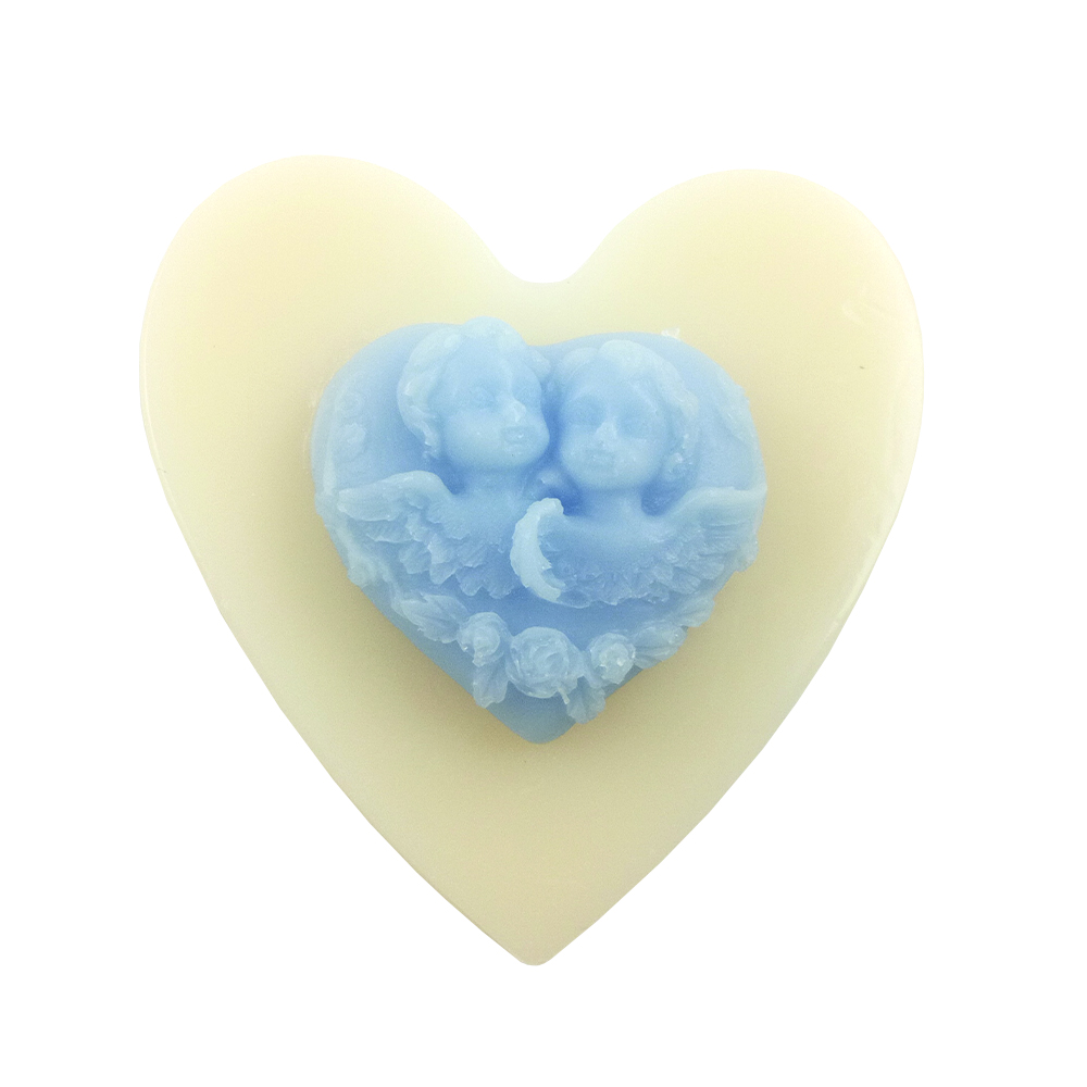 Este modelo de anjinhos aplicados em coração em sabonete é uma ótima ideia de lembrança de batizado, aniversário, de casamento para as crianças ou mesmo de outro tipo de evento. Este modelo pode integrar arranjos com outros modelos (modelos à escolha) ou parte de conjuntos a personalizar.