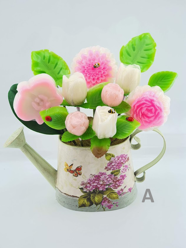 Flores artesanais feitas em sabonete natural.