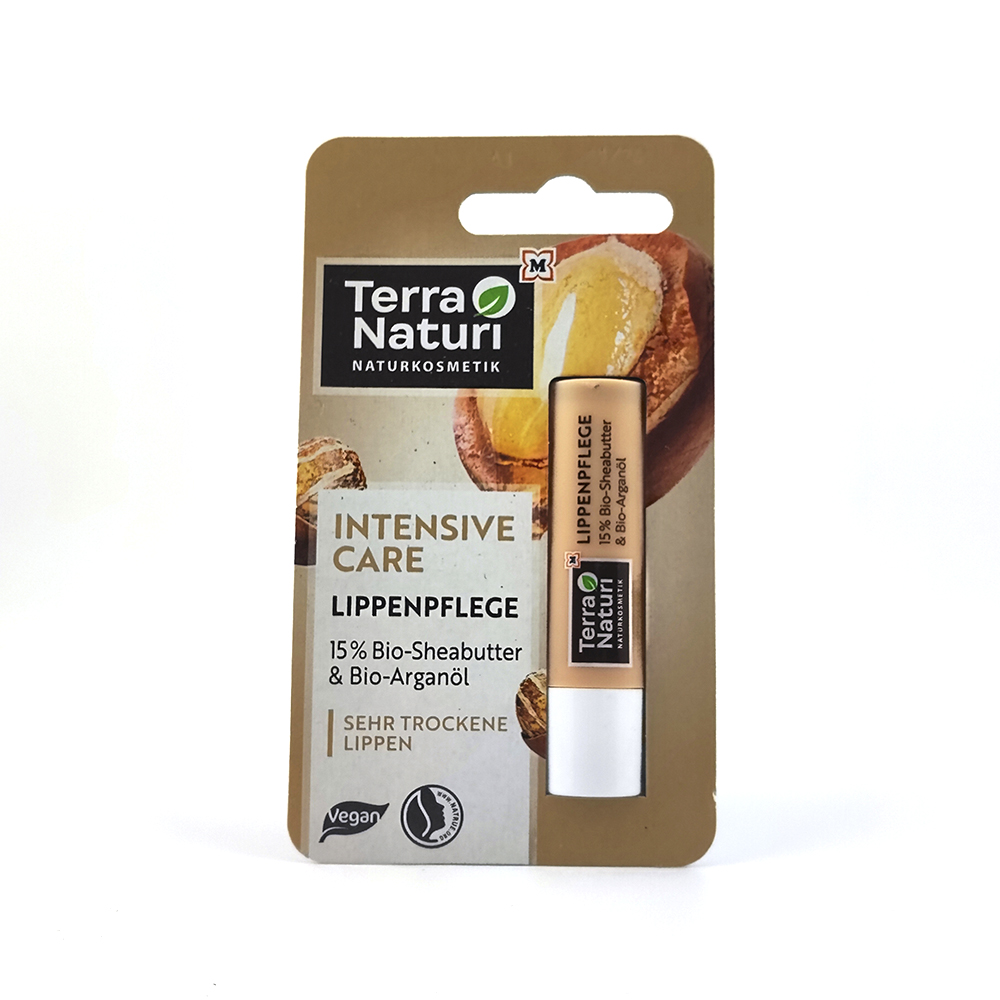 O cuidado labial INTENSIVE CARE contém 15% de manteiga de karité e óleo de argan orgânico - um dos óleos mais preciosos utilizados na cosmética natural.