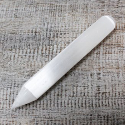 A pedra Selenite canaliza uma grande quantidade de luz e vibrações elevadas e assim promove uma forte elevação espiritual, pois ativa o 12º Chakra, conhecido como “Portal das Estrelas.