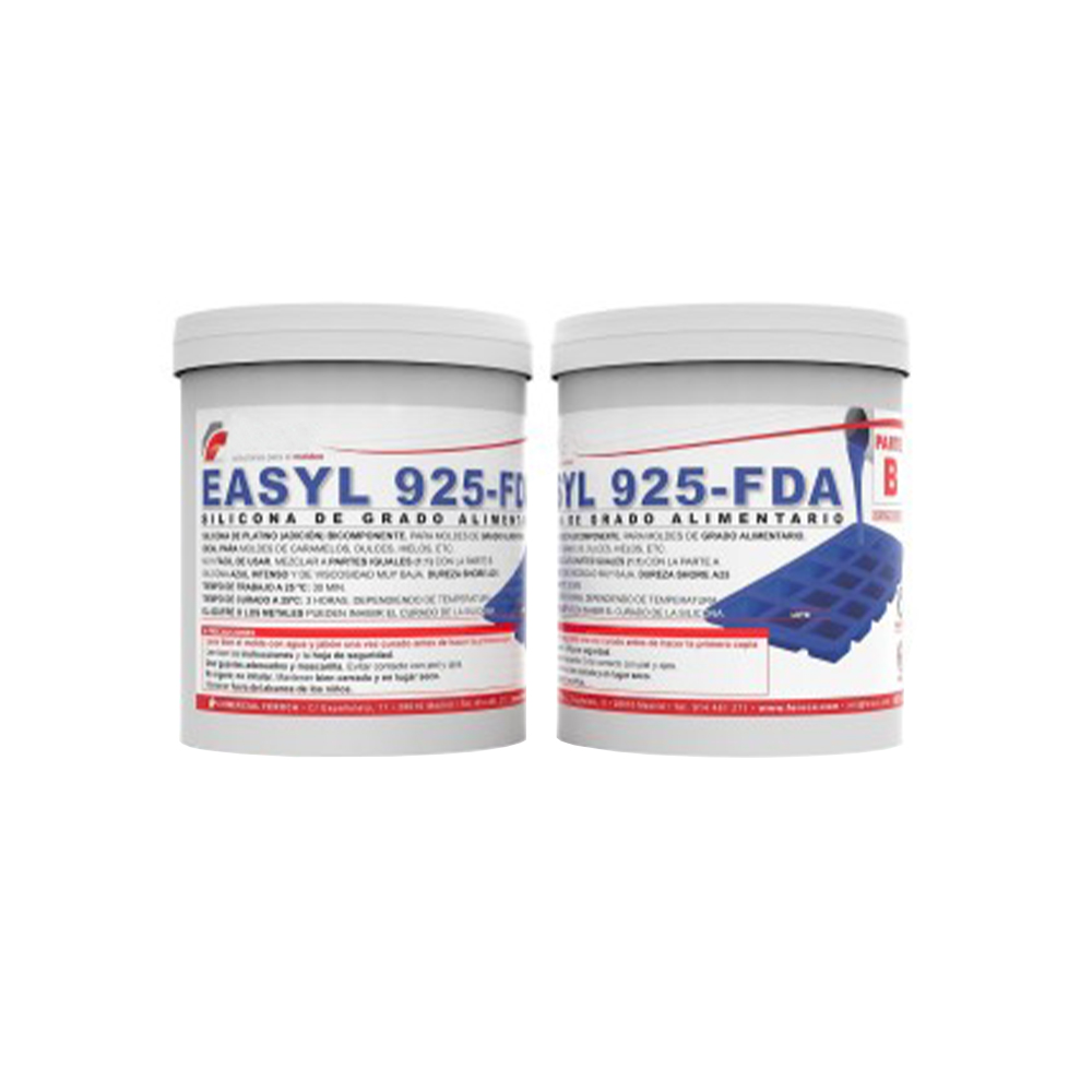 O silicone Easyl 925-FDA é um silicone de platina (adição) de dureza shore A 25, muito fácil de usar e adequado para fazer moldes de diferentes alimentos, cumprindo rigorosamente as instruções de uso.