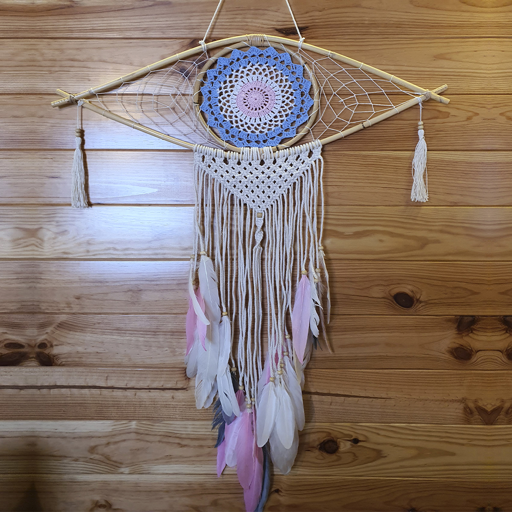 Caçador de Sonhos Olho Azul/Branco/Rosa - Macramé 70cm