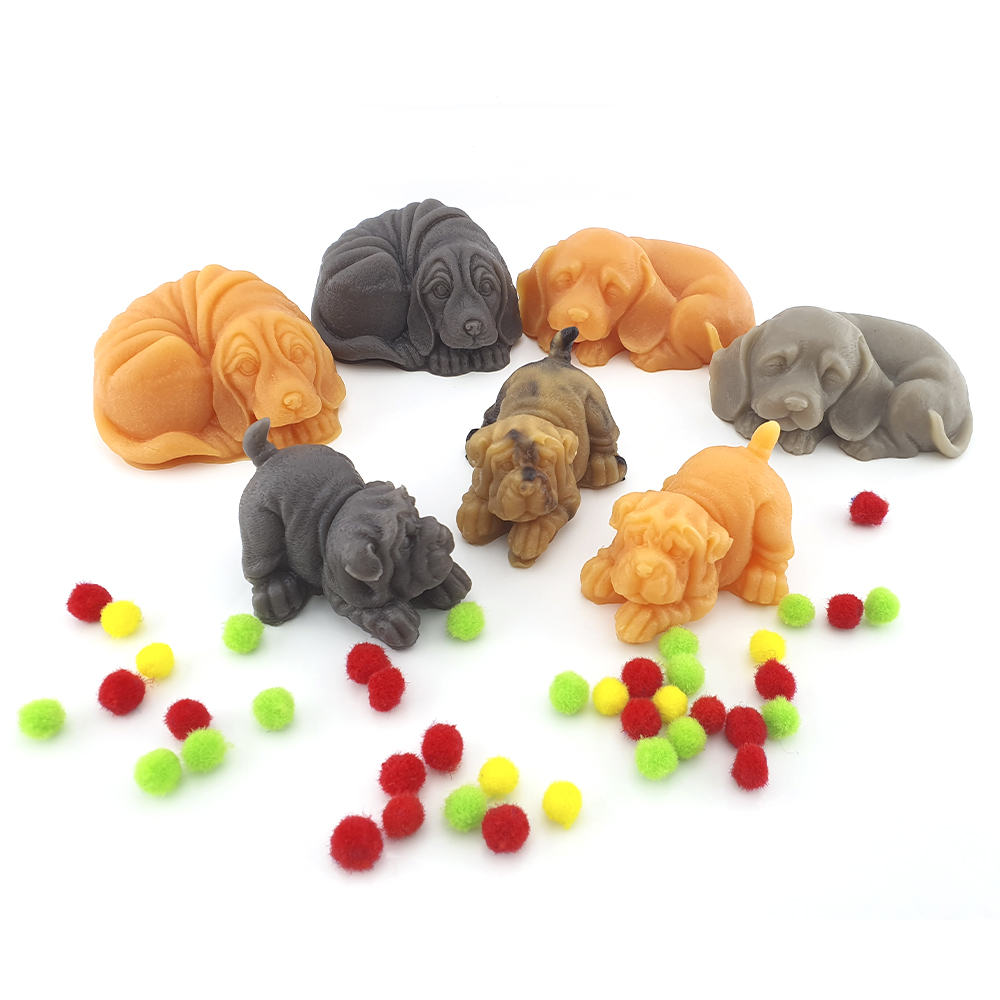 Estes lindos modelos de cães, osso e casota em sabonete são uma ótima ideia de presente de aniversário para os melhores amigos dos animais! Estes modelos podem integrar arranjos com outros modelos (modelos à escolha) ou parte de conjuntos a personalizar.