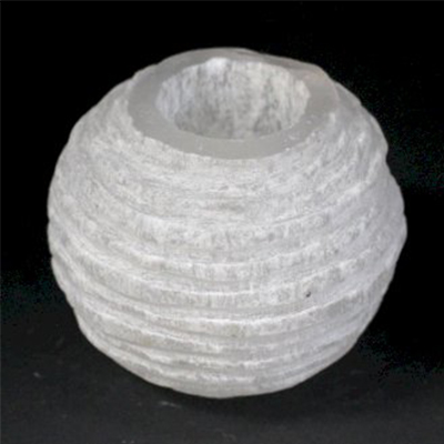 O selenite, que é uma espécie de cristal translúcido, permite que a chama da vela passe levemente através das paredes do castiçal. As bordas dos castiçais são ásperas, o que é natural para o selenite.