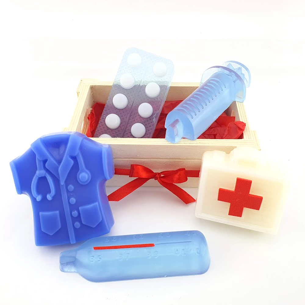 Este conjunto de modelos ligados ao profissional de saúde em sabonete são uma boa forma de presentear quem está ligado à saúde, personalizando uma oferta perfumada. Vendidos em conjunto ou em separado, estes modelos podem ainda integrar arranjos com outros modelos ou fazer parte de conjuntos a personalizar.