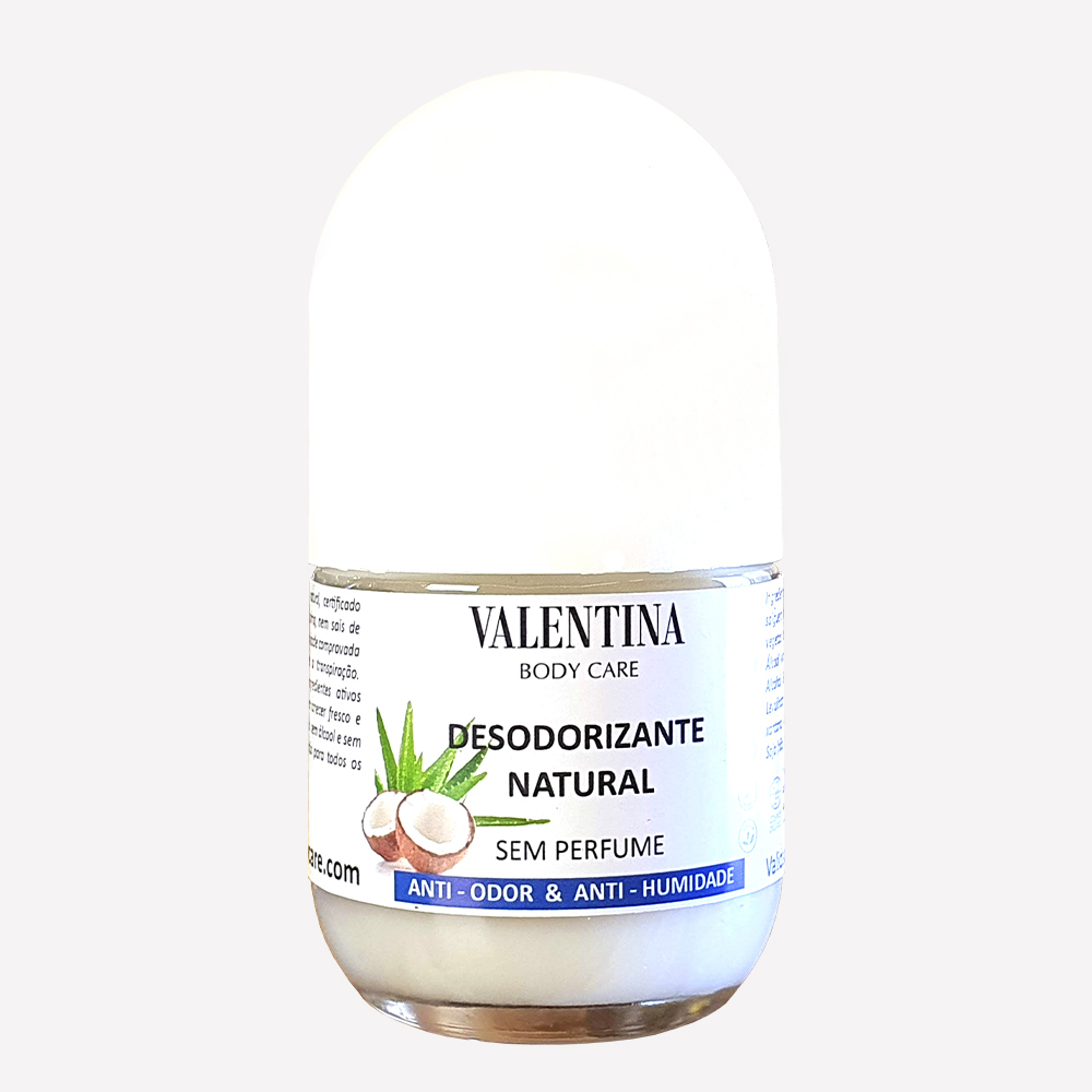 Desodorizante roll-on 100% natural, sem perfume, sem óleo de palma, sem álcool e sem alumínio, este desodorizante orgânico certificado garante eficácia contra maus odores.