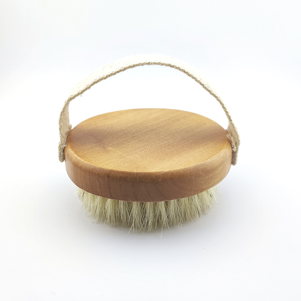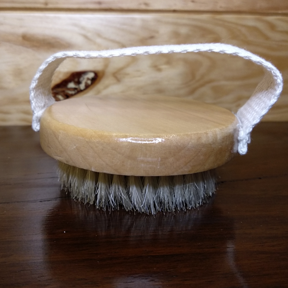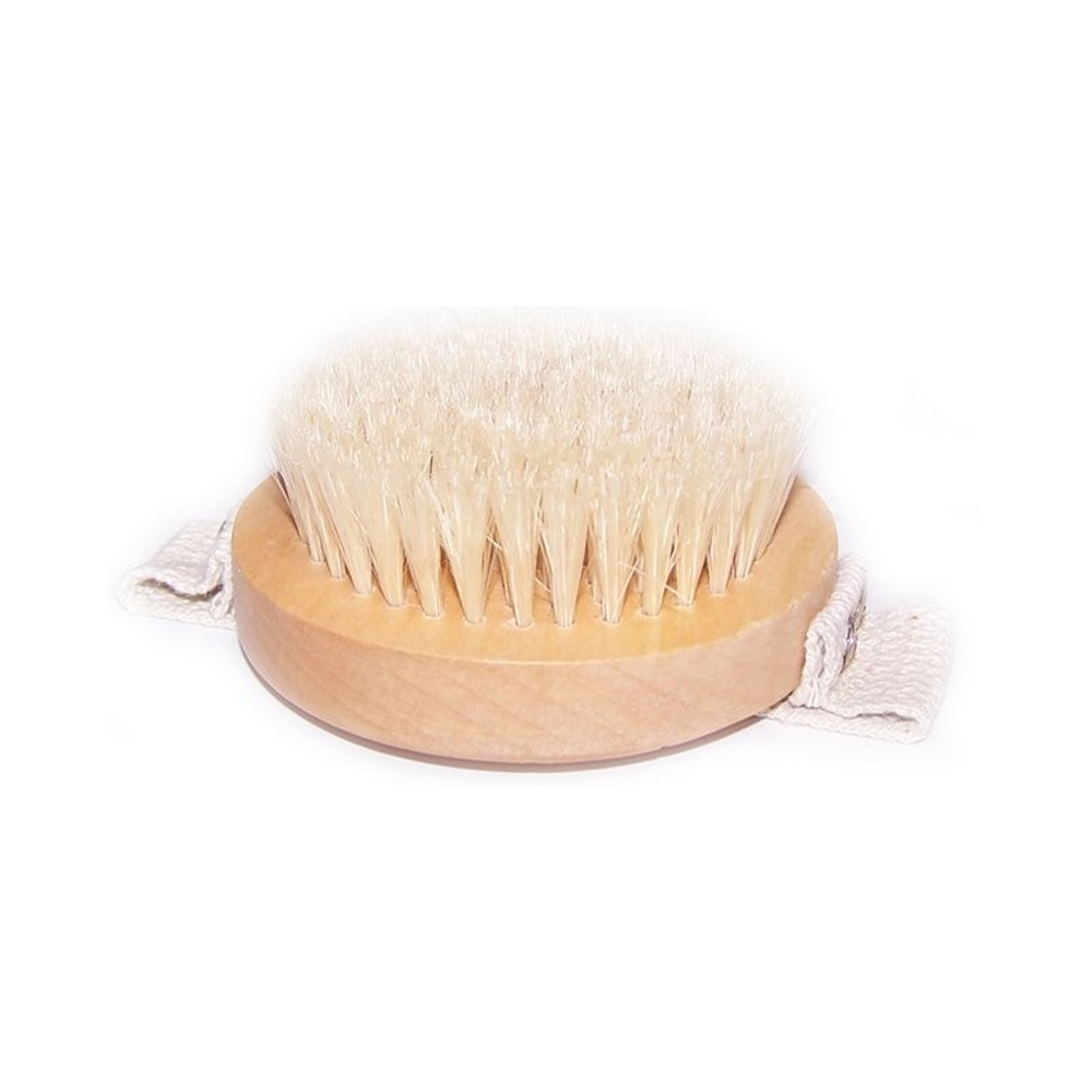 Escova para o corpo de madeira e cerdas naturais.