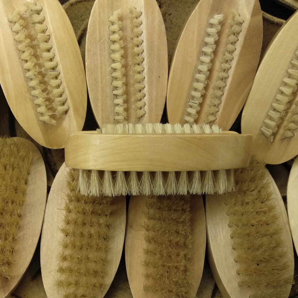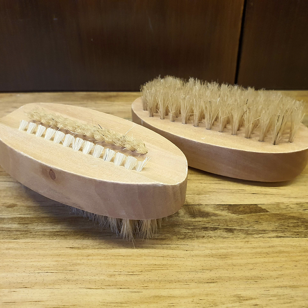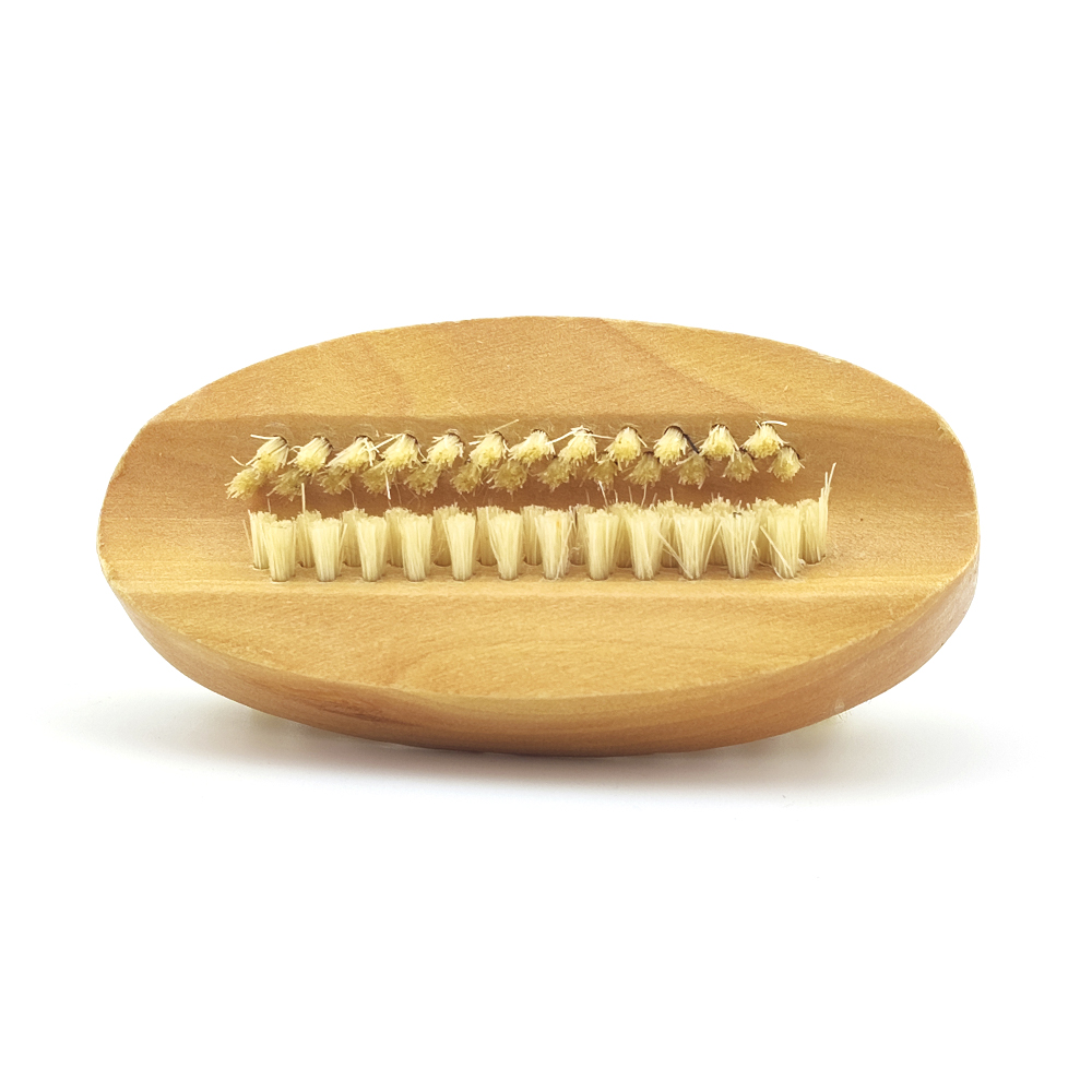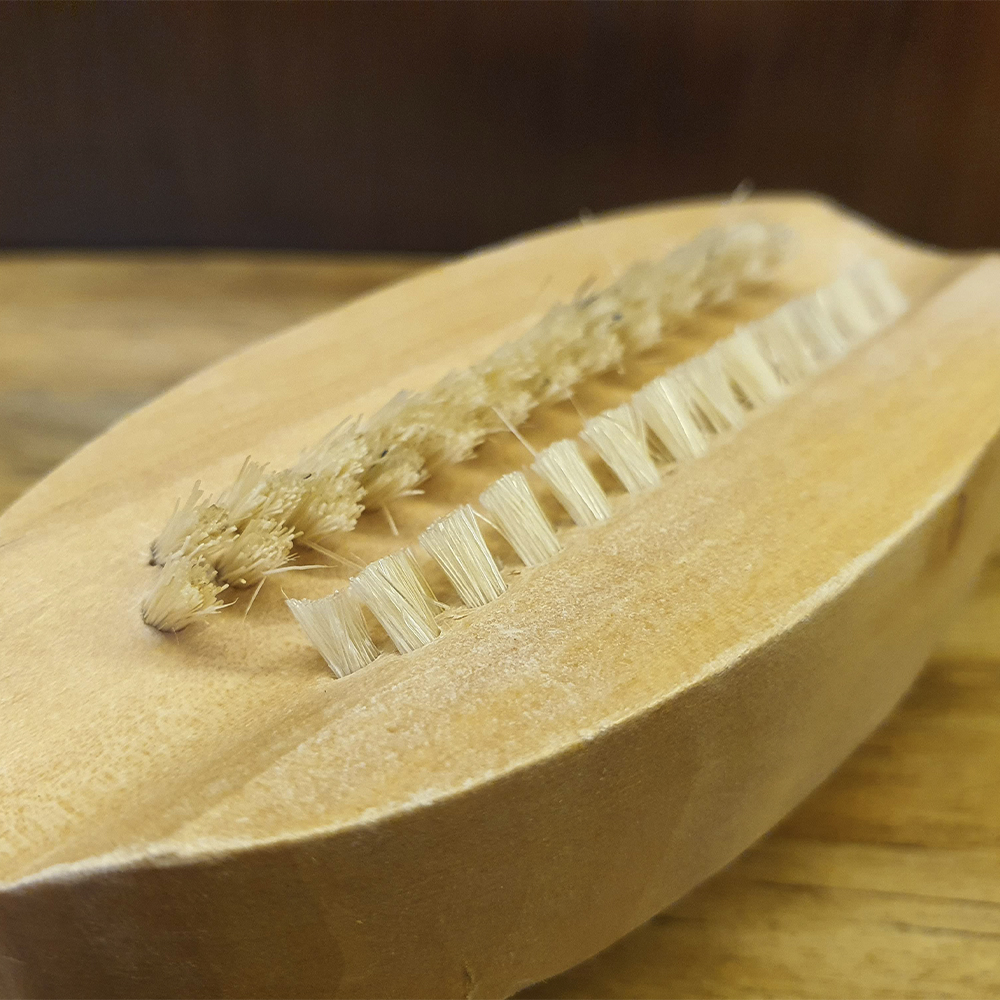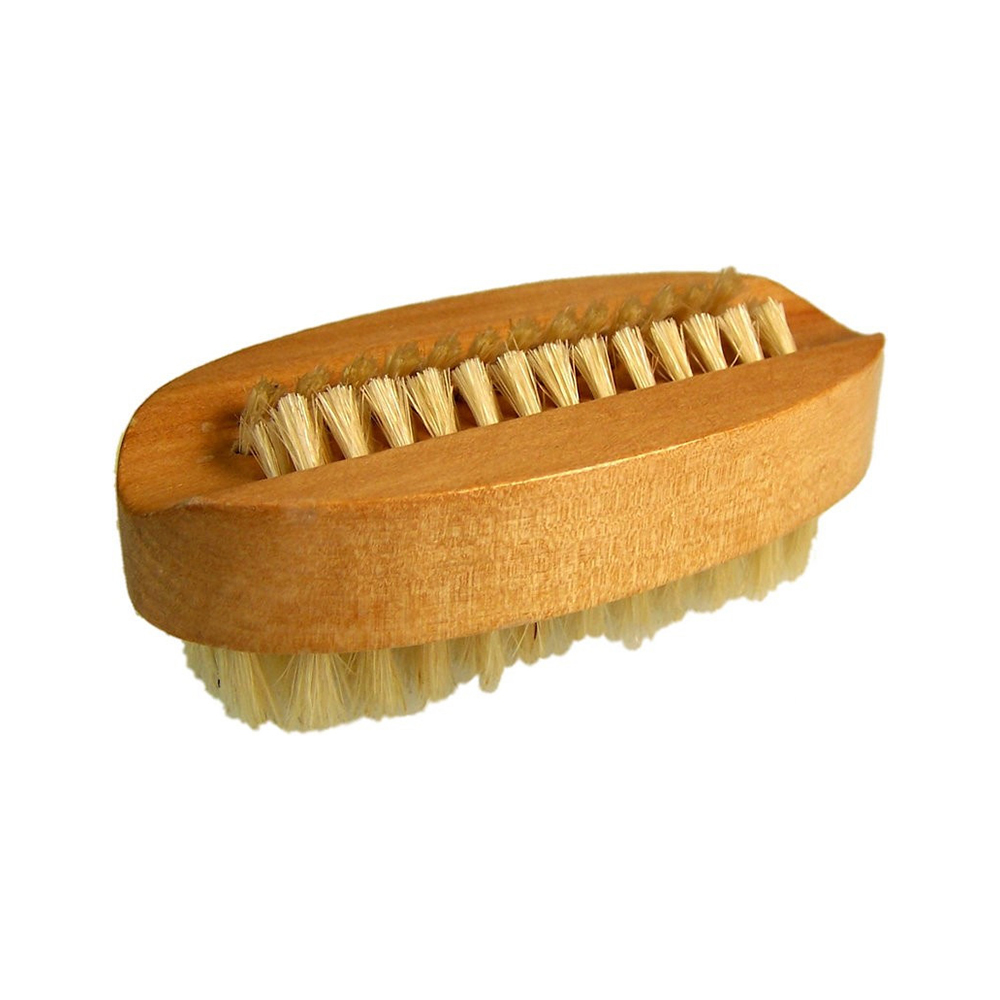 Escova das unhas dupla face em madeira e cerdas naturais.