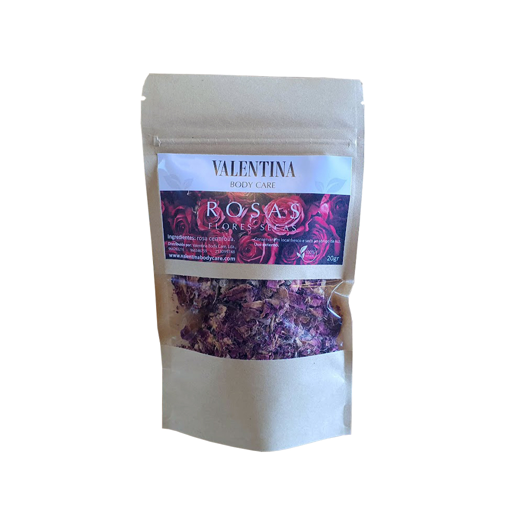 Composição: 100% Flores e pétalas secas de Rosa gallica, Rosa centifolia e Rosa damascena