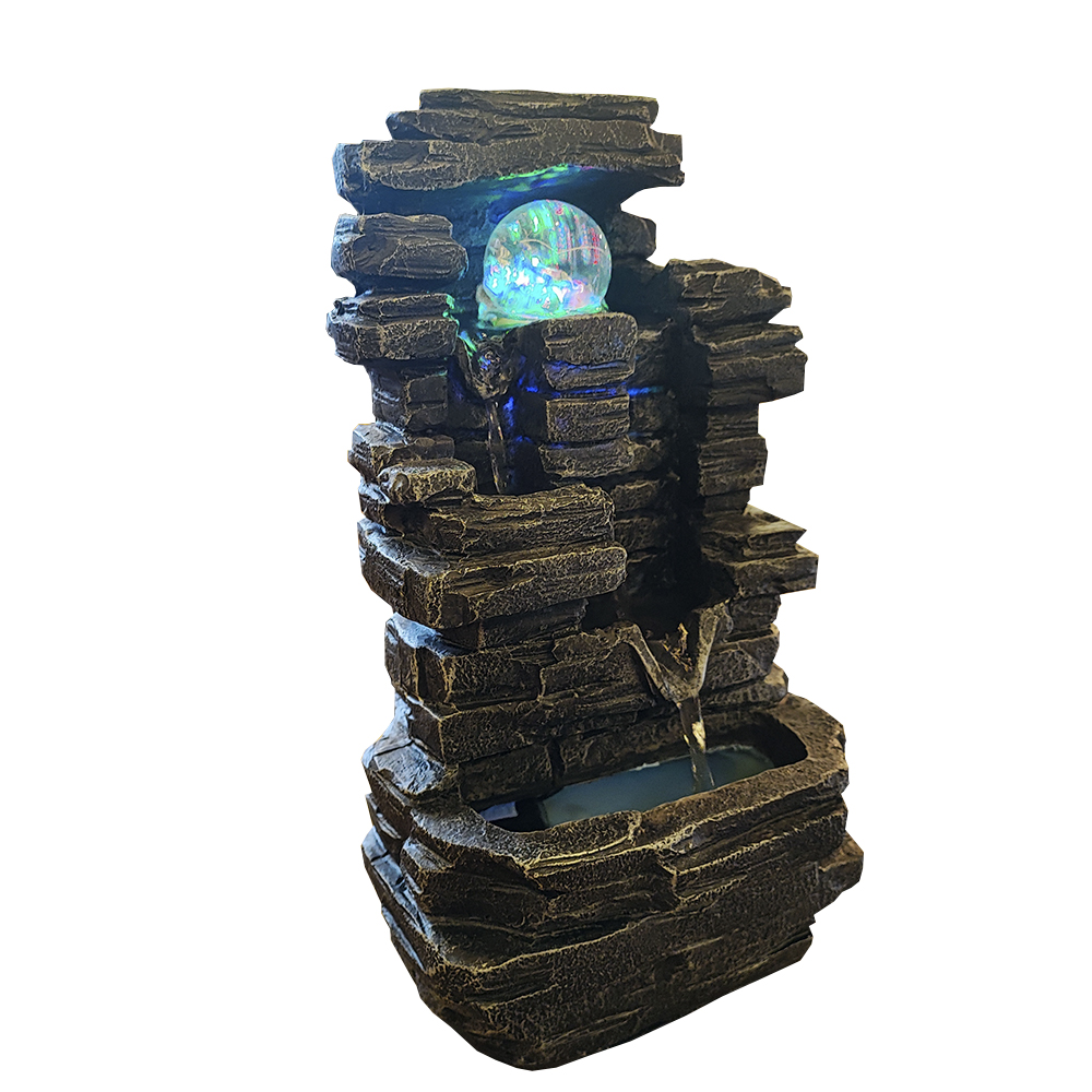 Fonte de Água Feng Shui - Formação Rochosa Com Bola de Cristal