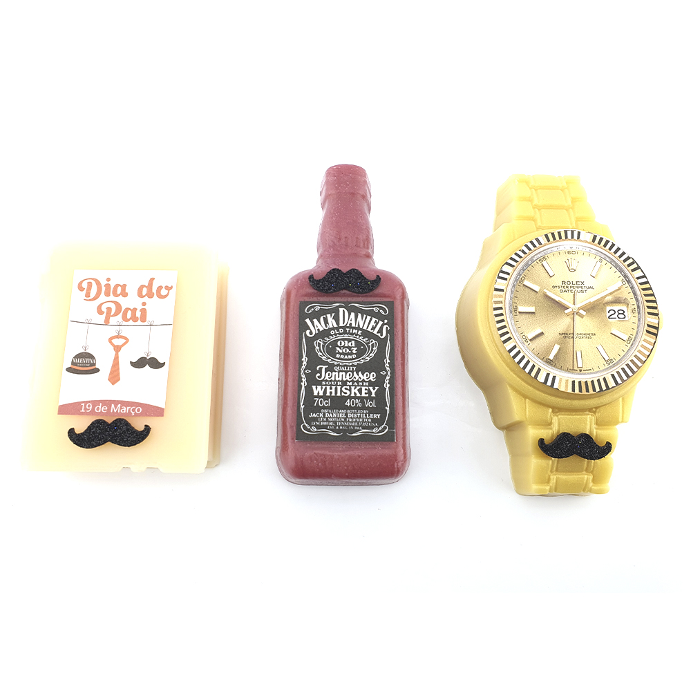Este modelo de garrafa em sabonete vai garantidamente surpreender qualquer aniversariante ou pai, avô no Dia do Pai. Pode ser personalizado para garrafa de whisky, Coca-cola, ou outros. Este modelo pode integrar arranjos com outros modelos (modelos à escolha) ou parte de conjuntos a personalizar.