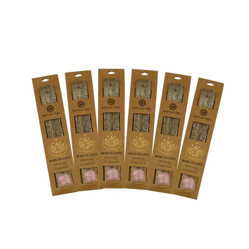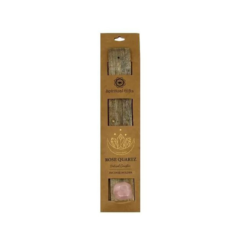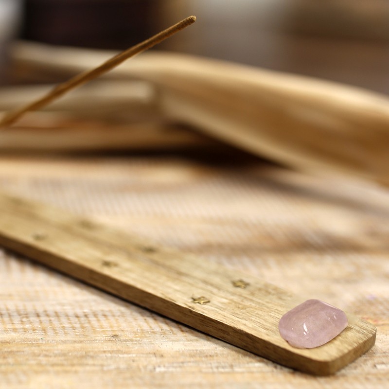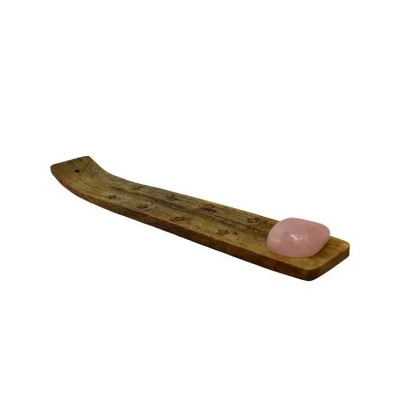 Incensário artesanal de madeira com pedra de Quartzo Rosa.