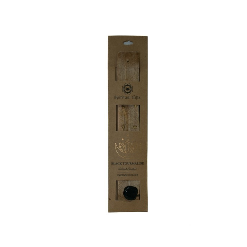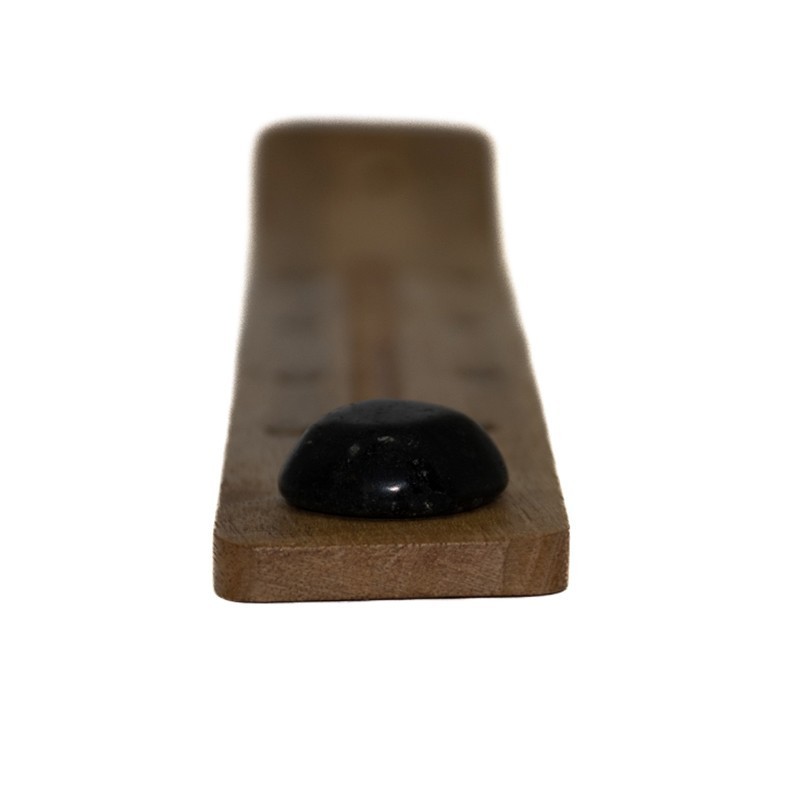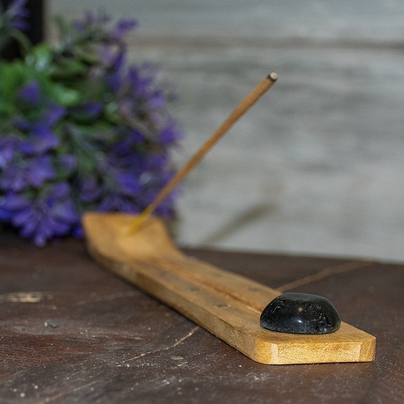 Incensário artesanal de madeira com pedra de Turmalina Negra.