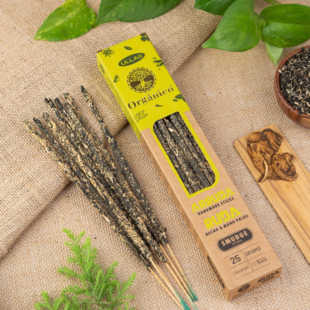 O incenso de Arruda apresenta toda a terapêutica desta planta, promovendo a harmonia de ambiente e as pessoas que estão nele, pois contém em sua composição ervas capazes de afastar as energias negativas, ao mesmo tempo que favorecem a proteção energética popularmente utilizado contra a inveja e mau olhado.