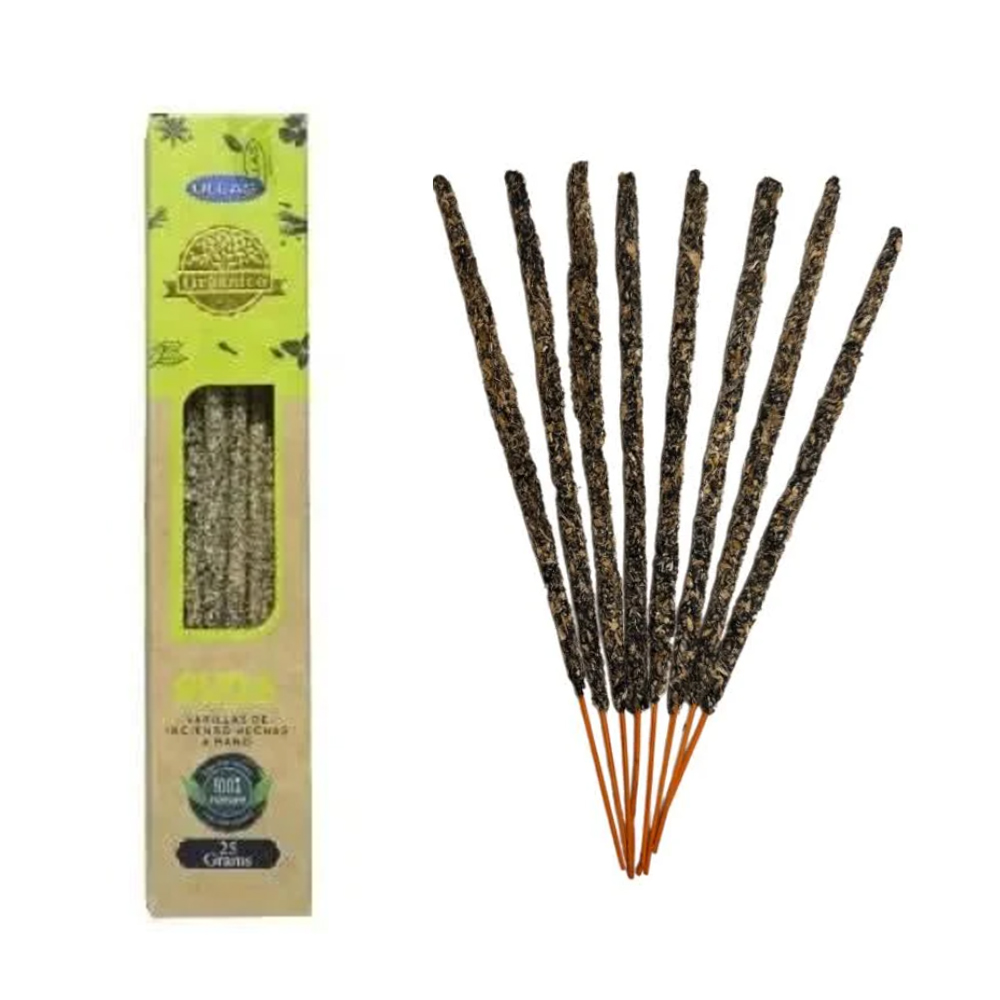 Os incensos orgânicos Ullas são produzidos artesanalmente com matérias‑primas naturais e técnicas tradicionais indianas. Cada vareta é moldada à mão, garantindo textura uniforme e combustão suave. As fragrâncias são extraídas de óleos essenciais, resinas e ervas puras, sem aditivos sintéticos. Este processo respeita o meio ambiente e valoriza o saber ancestral, resultando em aromas autênticos, duradouros e ideais para meditação, relaxamento e purificação energética.