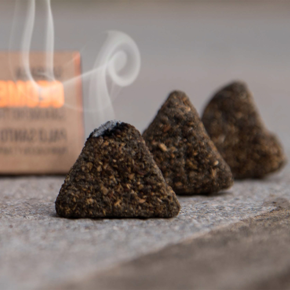 Composição: carvão vegetal, resinas, ervas aromáticas e óleos essenciais, aglutinante vegetal.