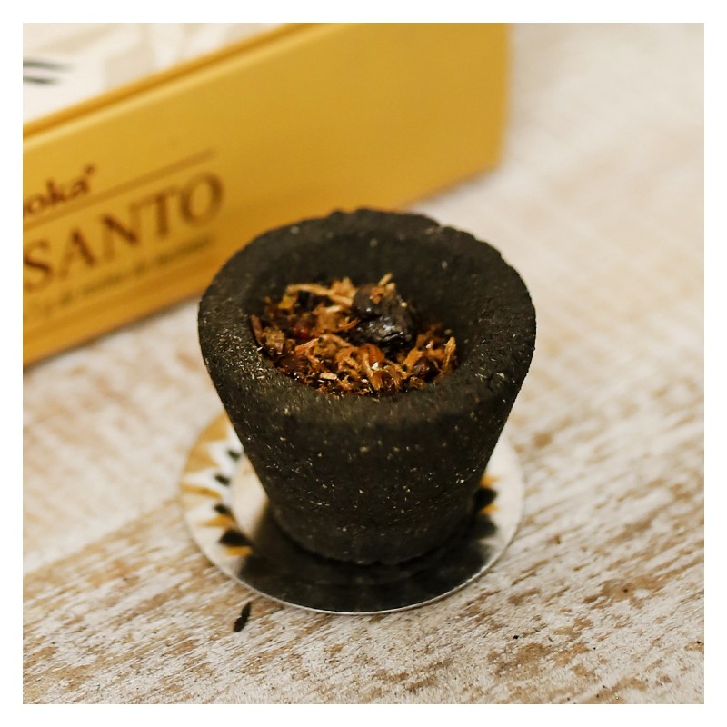 O copinho é feito em carvão ativado e serve para queimar as resinas do interior que são incenso no seu estado mais puro. Basta que acenda o copinho com um isqueiro ou no fogão para que ele crie a temperatura ideal para queimar as resinas lentamente e libertem o seu aroma.