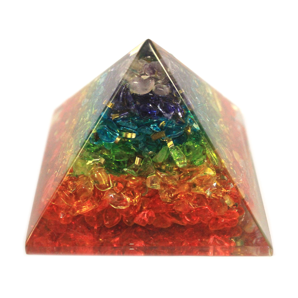 Pirâmide de Orgonite com Gemas dos 7 Chakra