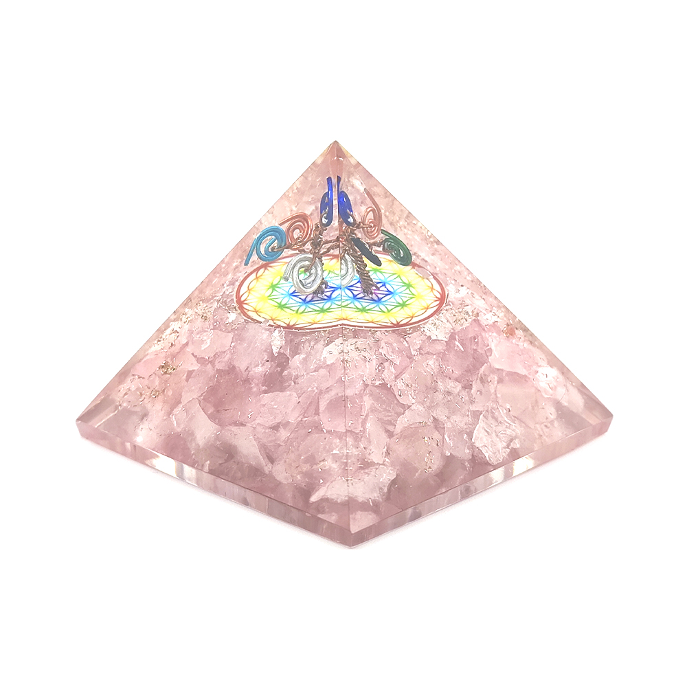 Pirâmide Orgonite Flor da Vida e Quartzo Rosa
