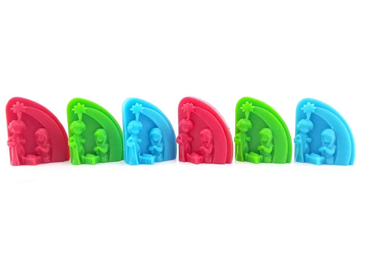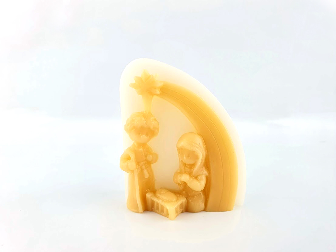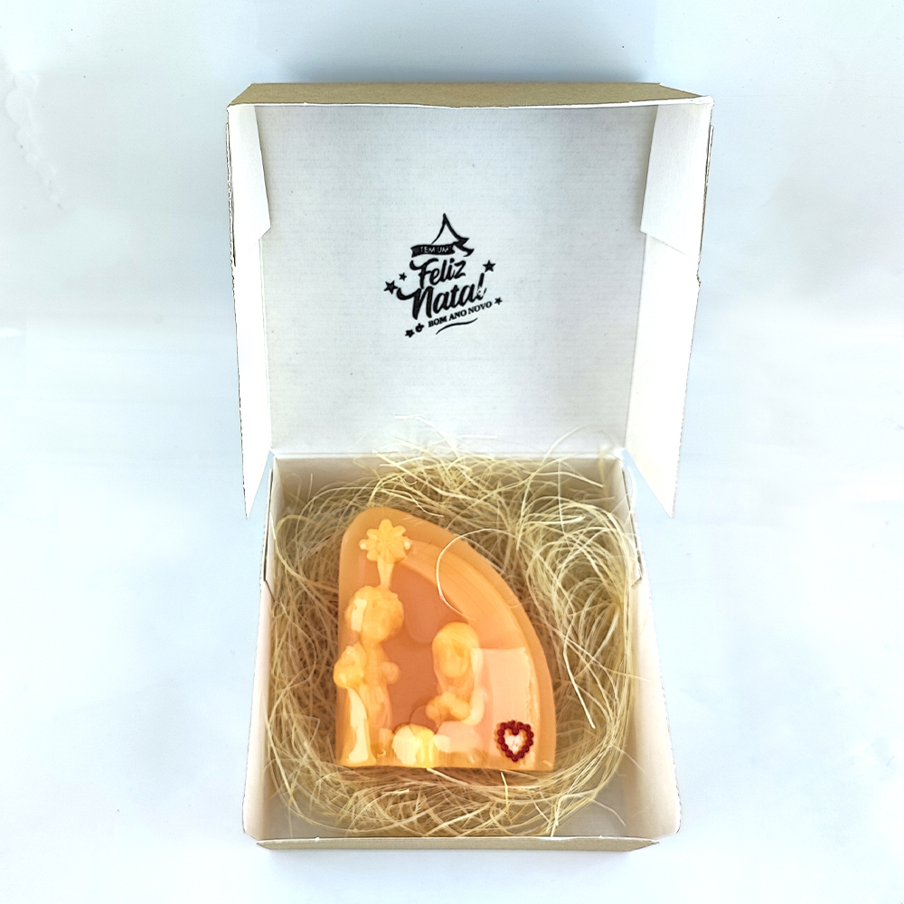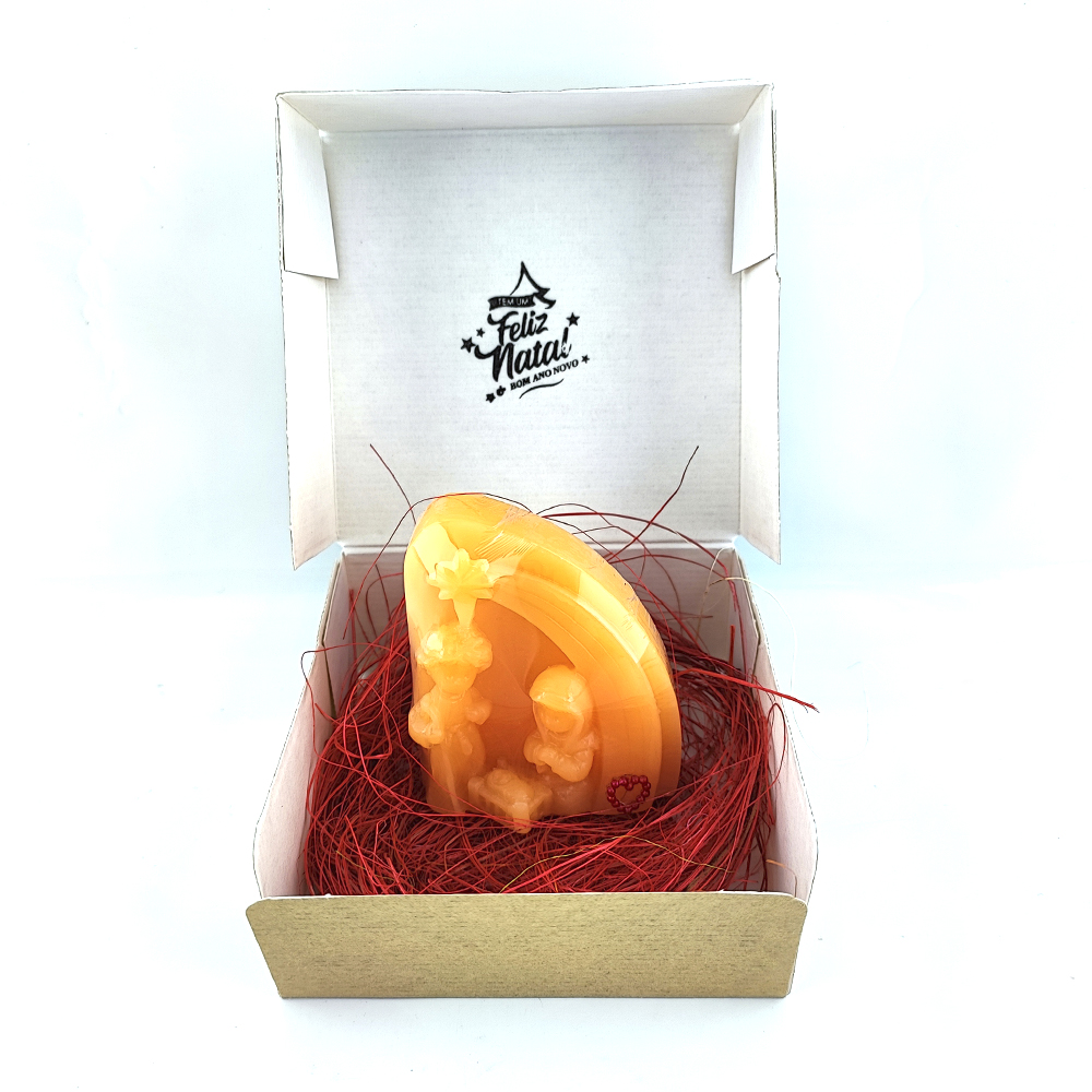 Na opção sem caixa, o presépio é embalado em saquinho de celofane com fita e cartão de boas festas.