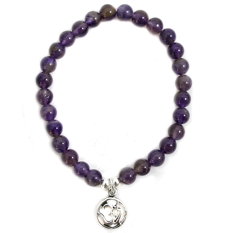 Pulseira de Ametista Com OM de Prata