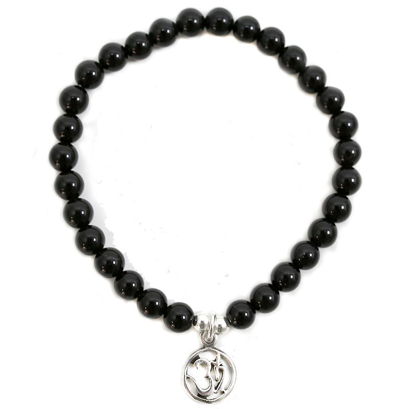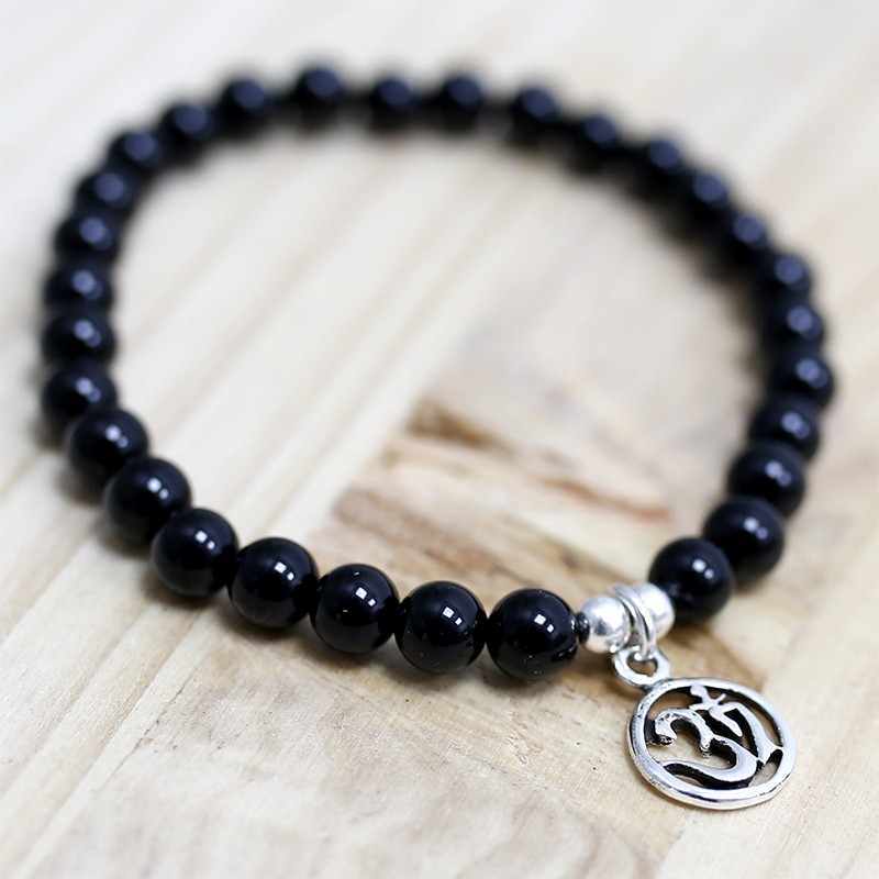 Pulseira de Ónix Com OM de Prata