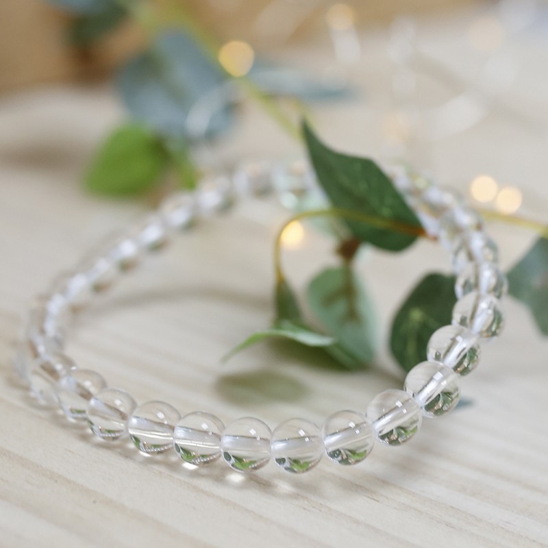 Pulseira de Quartzo Cristal com esferas lisas de 6 mm