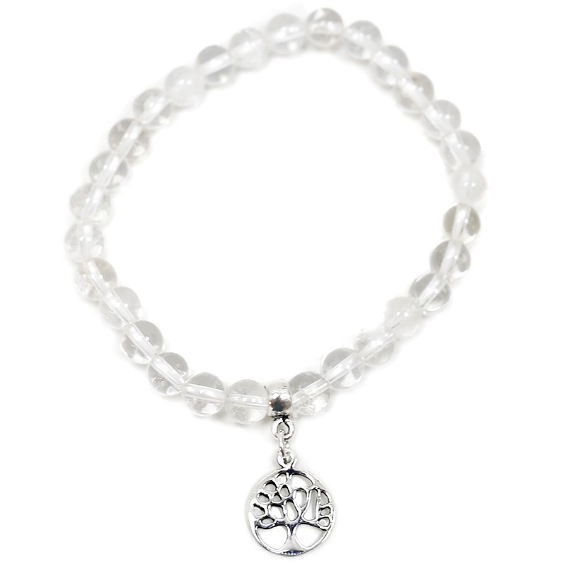 Pulseira de Quartzo Cristal Com Árvore da Vida de Prata