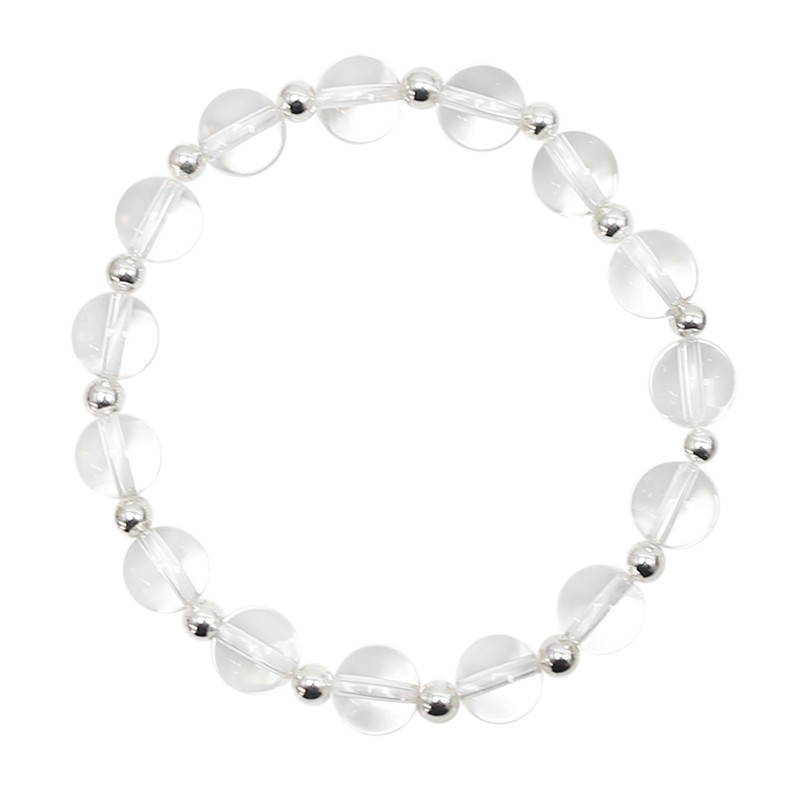 Pulseira de Quartzo Cristal Transparente com esferas lisas de 8 mm e Pérolas de Prata 925
