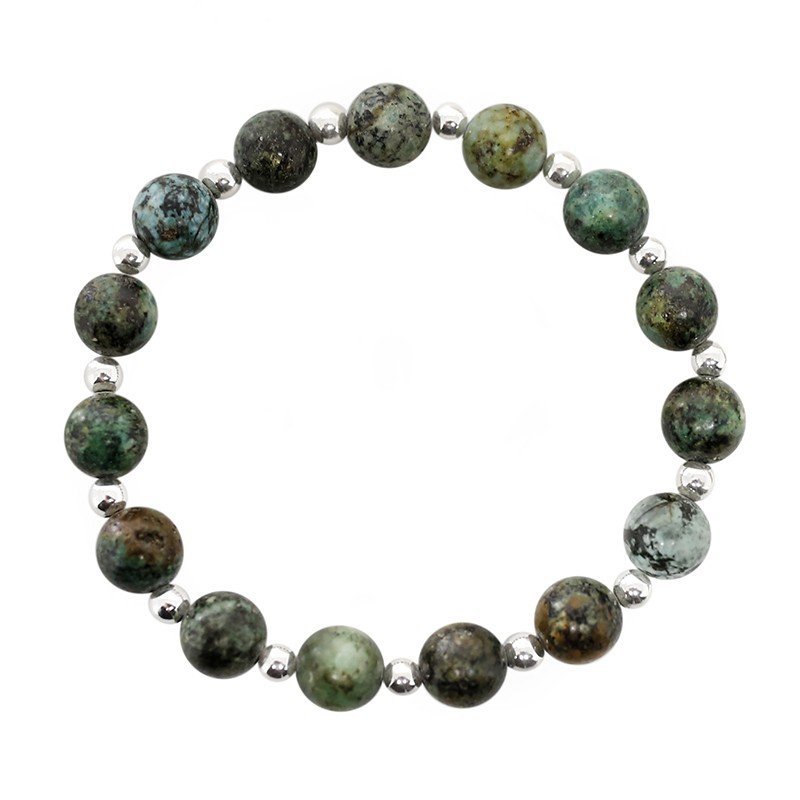 A Turquesa Africana, também conhecida como jaspe africano, é uma pedra apreciada pelas suas propriedades de proteção, cura e evolução. Está associada ao equilíbrio emocional e ao otimismo, ajudando a aliviar o stresse e a promover a harmonia interior. A turquesa africana também é conhecida por curar traumas do passado e melhorar a saúde física. É também considerada uma pedra de mudança positiva, ajudando a trazer estrutura e rotina para a vida, facilitando a manifestação de novas oportunidades.