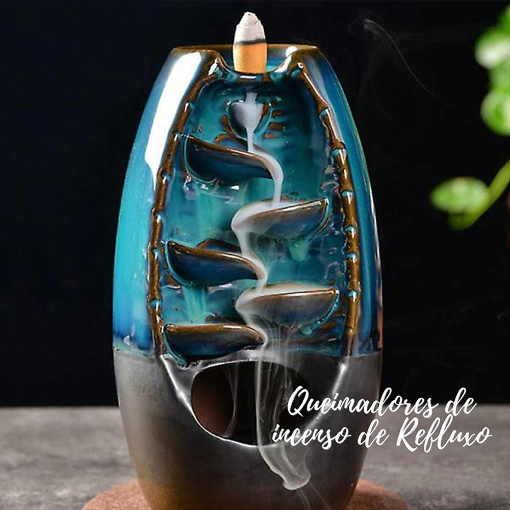 Os queimadores de incenso por refluxo (fluxo inverso) são especialmente projetados para criar uma cascata de fumo, proporcionando um efeito deslumbrante que relaxa e promove a reflexão.