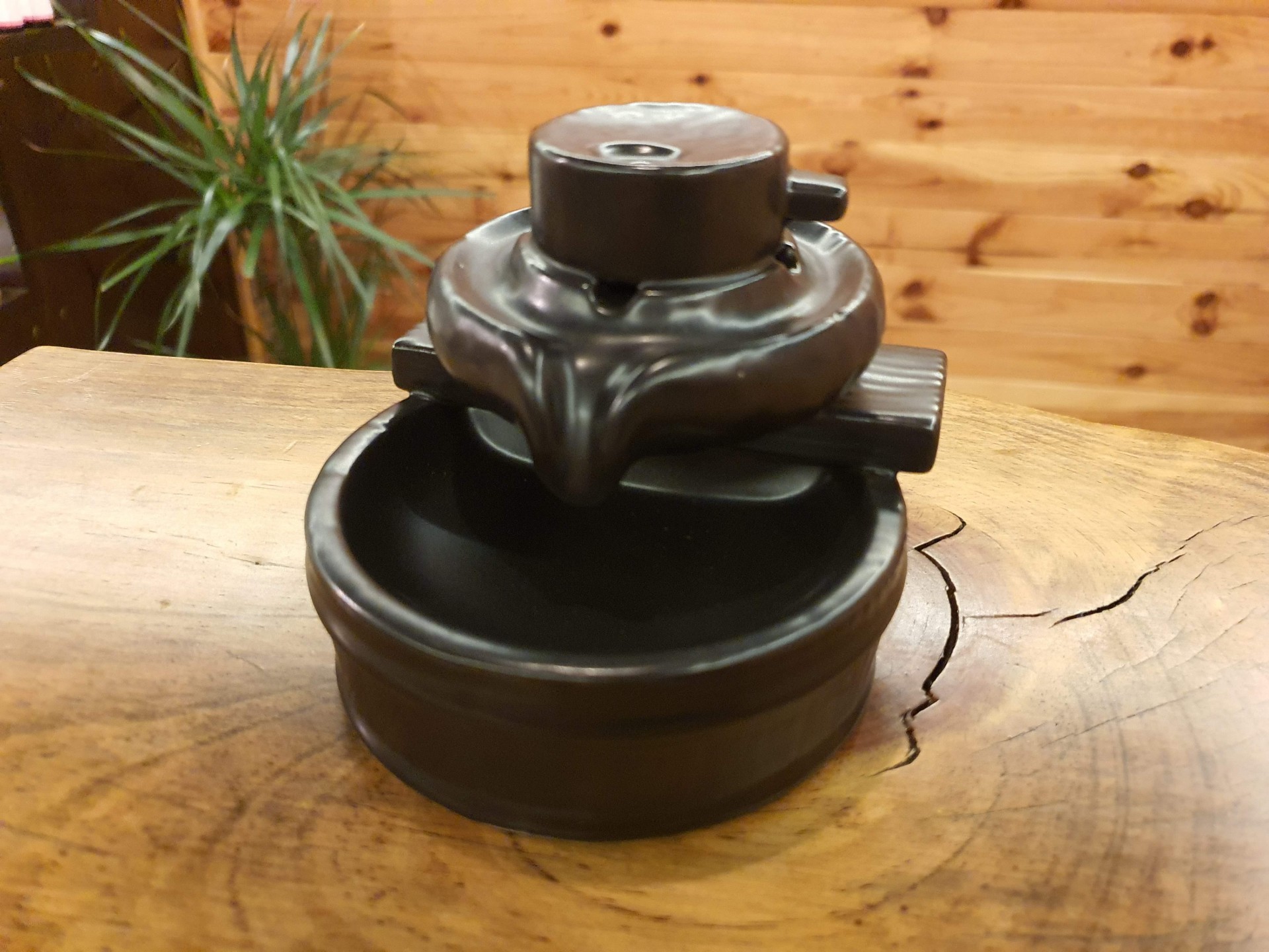 Esta cascata original proporciona excelentes momentos de meditação, paz e tranquilidade, ao apreciar o fumo a fluir com o efeito de queda de água.