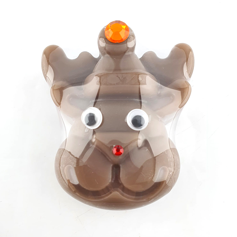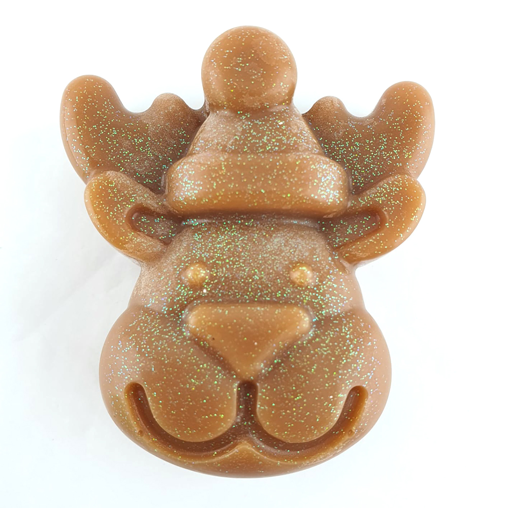 Rena com gorro de Natal em sabonete com aroma maravilhoso.