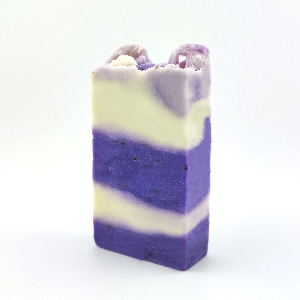 INCI: Sodium Olivate, Sodium Cocoate, Aqua, Glycerin, Parfum, CI 77891, Lavandula Spica Flower/Leaf/Stem Extract, CI 17200, CI 42045