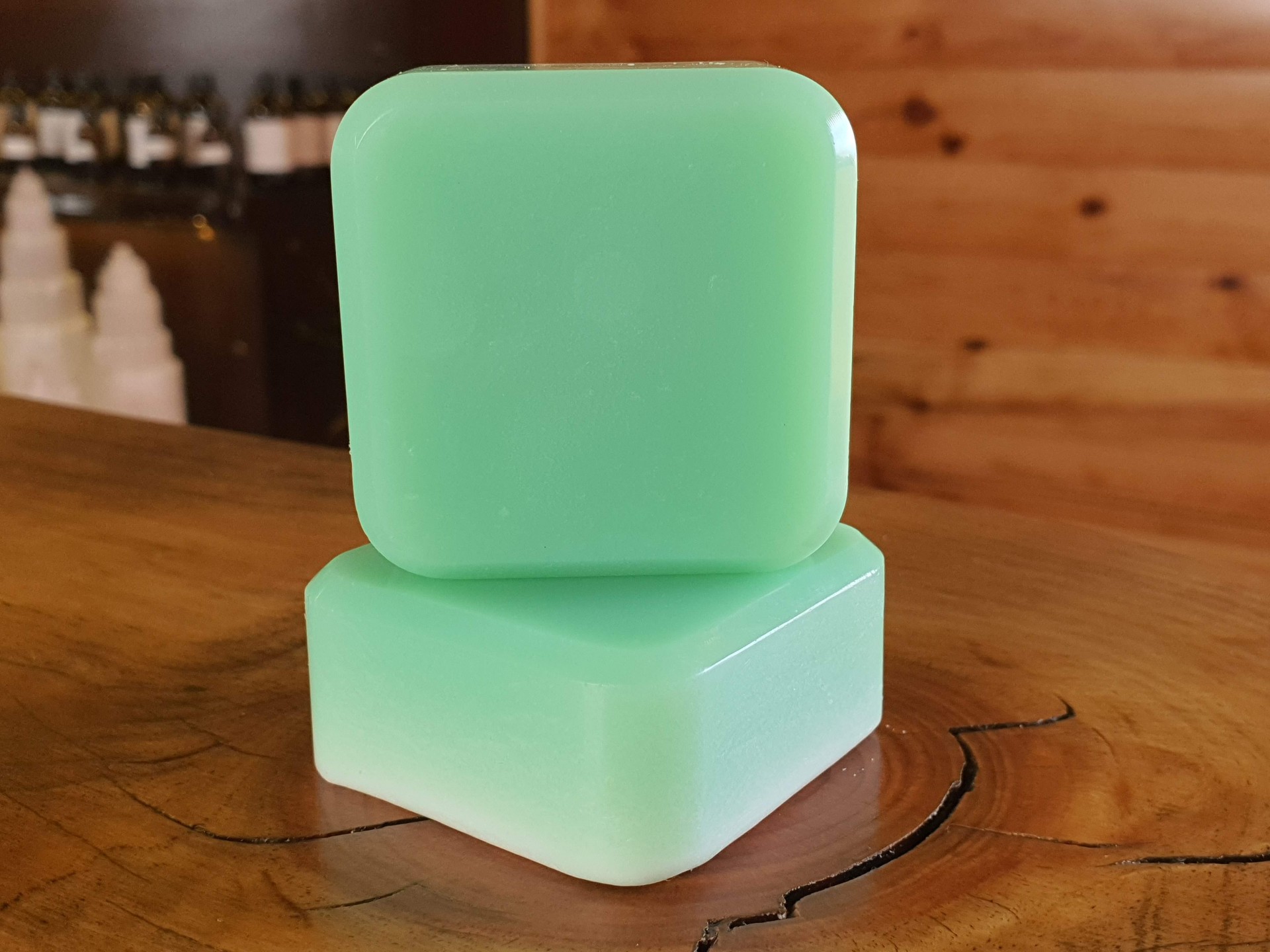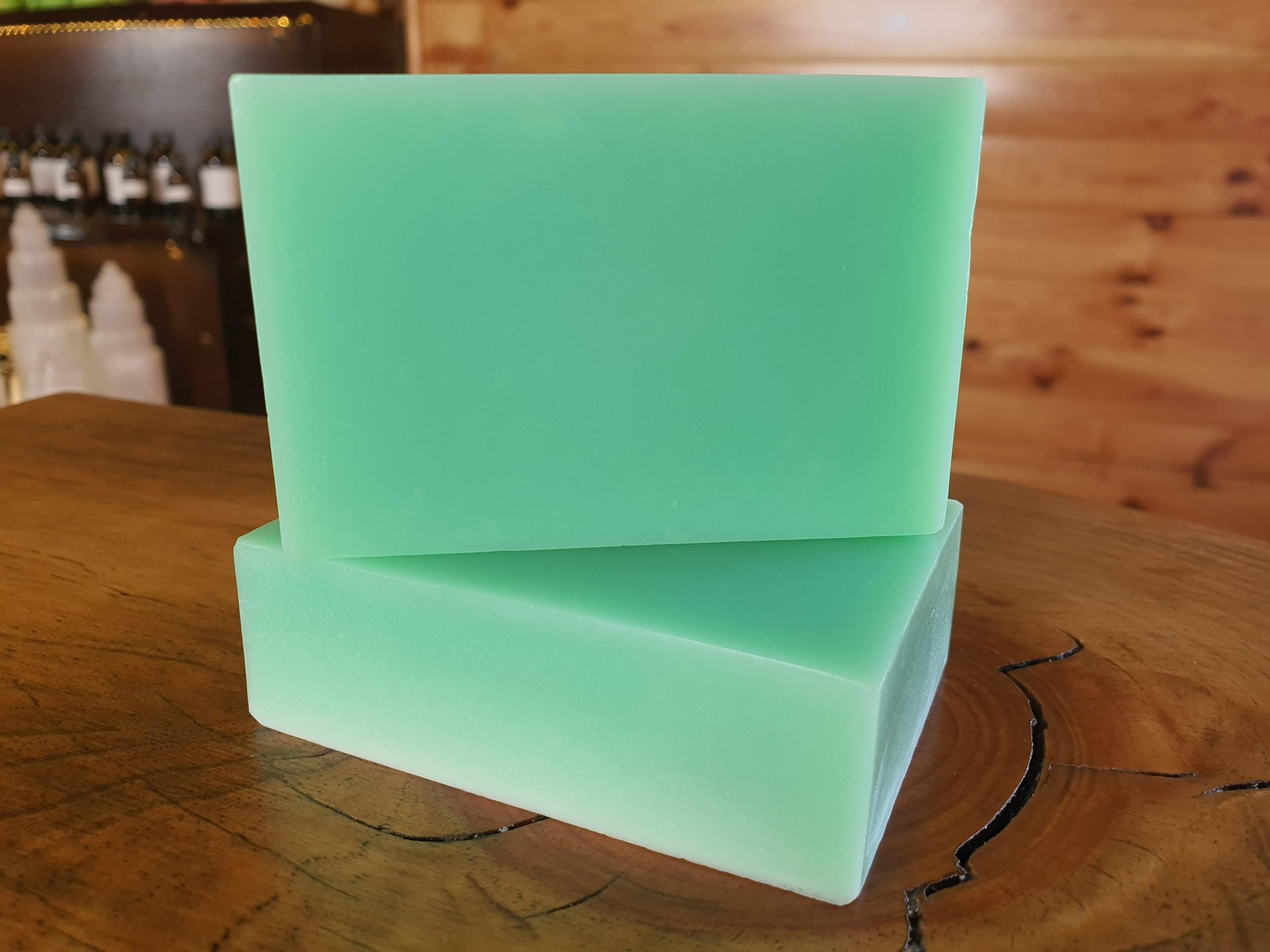 INCI: Glycerin, Aqua, Aloe barbadensis, Persea gratissima oil, menthe verte essential oil, Sodium Stearate, Sodium Hidroxide, Sodium chloride.
