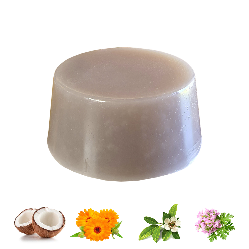 Ingredientes: Glicerina vegetal, óleos vegetais de Côco, Calêndula e óleos essenciais de Copaíba e Gerânio.