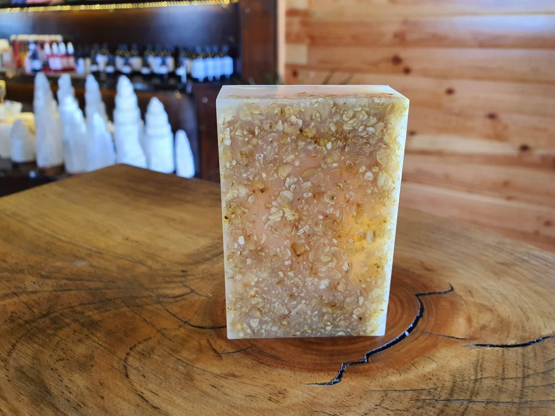 Ingredientes: Glicerina vegetal, óleo vegetal de Côco, leite de cabra desidratado, flocos de aveia.