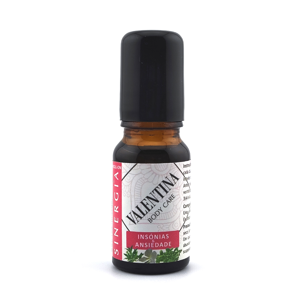 Os óleos essenciais de Lavanda angustifolia, Ravintsara, Tangerina, Laranja Doce, Verbena exótica, Laranja Amarga, Ylang-Ylang, Gerânio, Bergamota, etc. podem compôr a nossa sinergia para promover um relaxamento e um sono reparador, reunindo propriedades calmantes, relaxantes e ansiolíticas, sedativas e reequilibradoras do sistema nervoso. A sinergia pode conter de 3 a 5 óleos essenciais dos acima referidos. Disponível em roll-on pronto a usar, diluído, para maior segurança cutânea, e ainda em formato puro, para difusão.
