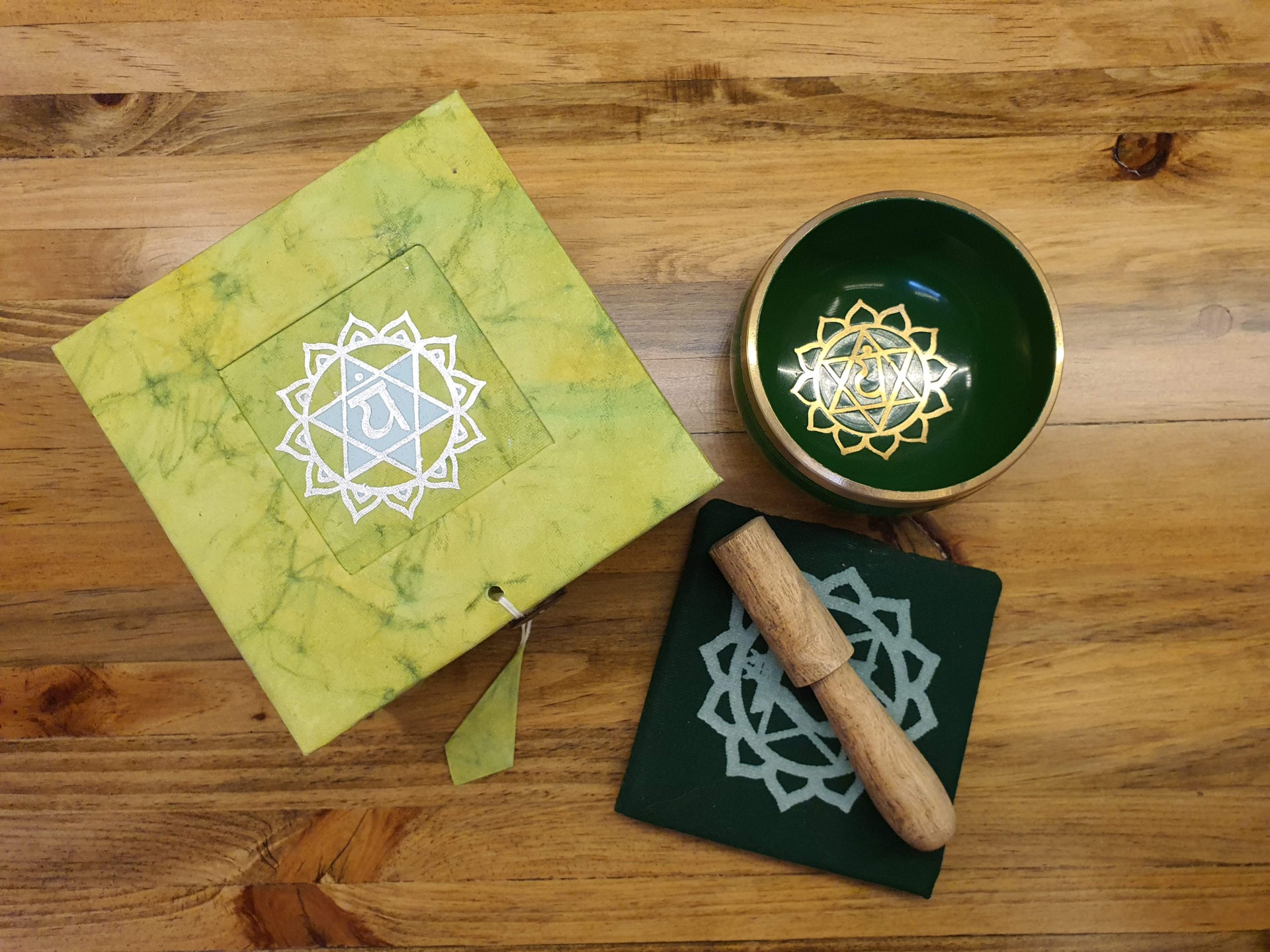 O Chakra do Coração é responsável pelo Amor Incondicional, pela nossa essência mais profunda. A sua cor é verde, está no centro, na altura do coração. Devido à sua posição, é o que conecta os três chakras inferiores com os três superiores. O seu símbolo é a estrela de seis pontas e está associada ao amor incondicional e à humildade. Nele encontra-se o nosso ser mais profundo no seu todo. A Taça vai equilibrar e harmonizar todo o nosso ser. Aqui vibram todos os elementos, pois o Amor é transversal a todos.