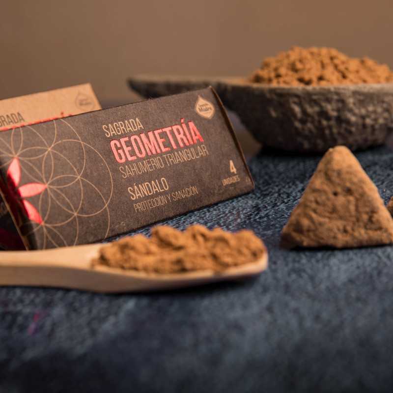 Incenso Triangular Geometria Sagrada Madre de Sândalo para proteção e cura.