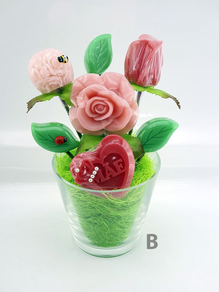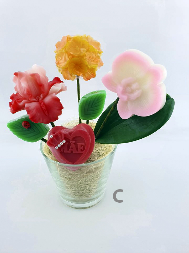 Flores artesanais feitas em sabonete natural.