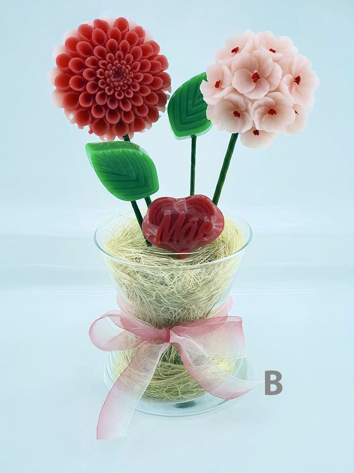Flores artesanais feitas em sabonete natural.